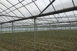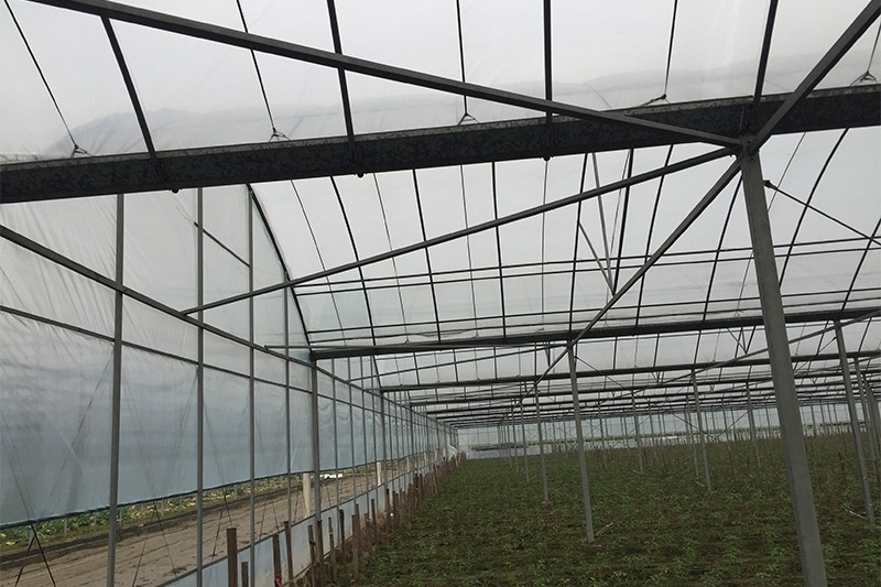 該產品由基礎、框架立柱,頂部拱管三大部分組成。點式獨立基礎,使大棚根基牢固;立柱采用熱鍍鋅方管,大大增強抗風抗雪強度;頂部由熱浸鍍鋅鋼管排列成平滑圓弧形,牢固兼美觀。同時天溝采用2mm厚熱鍍鋅板冷彎成型,容量大,排水及時;頂部天溝處和大棚四周均設置搖膜通風系統(tǒng),是大棚內部氣流通暢。此產品可根據(jù)需要實現(xiàn)相關配套設施,以便達到更理想的效果,如外遮陽系統(tǒng)、內遮陽保溫系統(tǒng)、降溫系統(tǒng)、加溫系統(tǒng)、噴滴灌系統(tǒng)等。