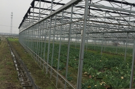 該產(chǎn)品由基礎(chǔ)、框架立柱,頂部拱管三大部分組成。點(diǎn)式獨(dú)立基礎(chǔ),使大棚根基牢固;立柱采用熱鍍鋅方管,大大增強(qiáng)抗風(fēng)抗雪強(qiáng)度;頂部由熱浸鍍鋅鋼管排列成平滑圓弧形,牢固兼美觀。同時天溝采用2mm厚熱鍍鋅板冷彎成型,容量大,排水及時;頂部天溝處和大棚四周均設(shè)置搖膜通風(fēng)系統(tǒng),是大棚內(nèi)部氣流通暢。此產(chǎn)品可根據(jù)需要實(shí)現(xiàn)相關(guān)配套設(shè)施,以便達(dá)到更理想的效果,如外遮陽系統(tǒng)、內(nèi)遮陽保溫系統(tǒng)、降溫系統(tǒng)、加溫系統(tǒng)、噴滴灌系統(tǒng)等。