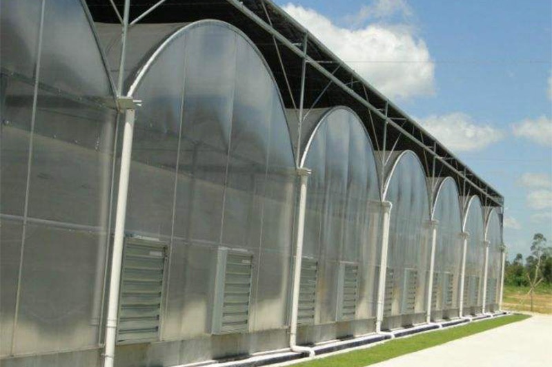PC板溫室可做成拱形或者尖頂,該溫室的覆蓋材料為聚碳酸酯中空板(PC陽光板),與其他覆蓋材料相比,具有采光好、保暖、請便、強度高、防結(jié)露、抗沖擊、阻燃、經(jīng)濟耐用等優(yōu)點,該板的向陽面具有放紫外線圖層,抗老化性能達(dá)10年。溫室使用壽命長,外形美觀漂亮,保溫效果好,冬季可節(jié)省加熱能耗。