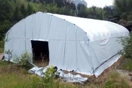 本大棚熱鍍鋅鋼管骨架,采用厚度15絲的黑白膜覆蓋,有效阻止光線進(jìn)入大棚,兩側(cè)卷膜通風(fēng),適用于菌菇種植。