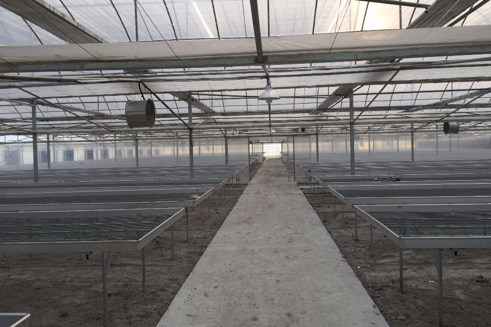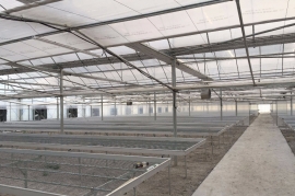 該產品由基礎、框架立柱,頂部拱管三大部分組成。點式獨立基礎,使大棚根基牢固;立柱采用熱鍍鋅方管,大大增強抗風抗雪強度;頂部由熱浸鍍鋅鋼管排列成平滑圓弧形,牢固兼美觀。同時天溝采用2mm厚熱鍍鋅板冷彎成型,容量大,排水及時;頂部天溝處和大棚四周均設置搖膜通風系統(tǒng),是大棚內部氣流通暢。此產品可根據需要實現相關配套設施,以便達到更理想的效果,如外遮陽系統(tǒng)、內遮陽保溫系統(tǒng)、降溫系統(tǒng)、加溫系統(tǒng)、噴滴灌系統(tǒng)等。